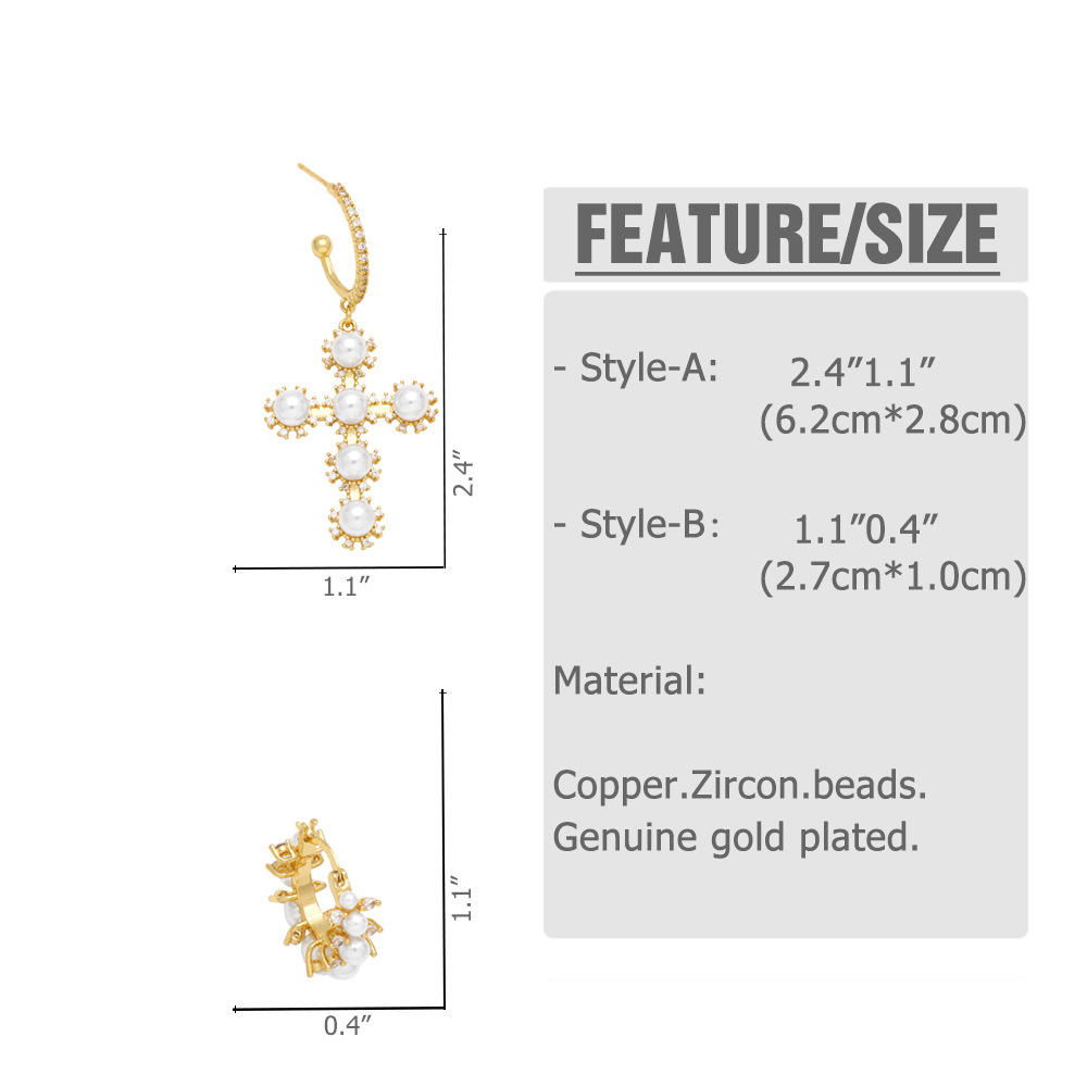 Pearl Geometric Circle Ear Clip Cross Eardrops